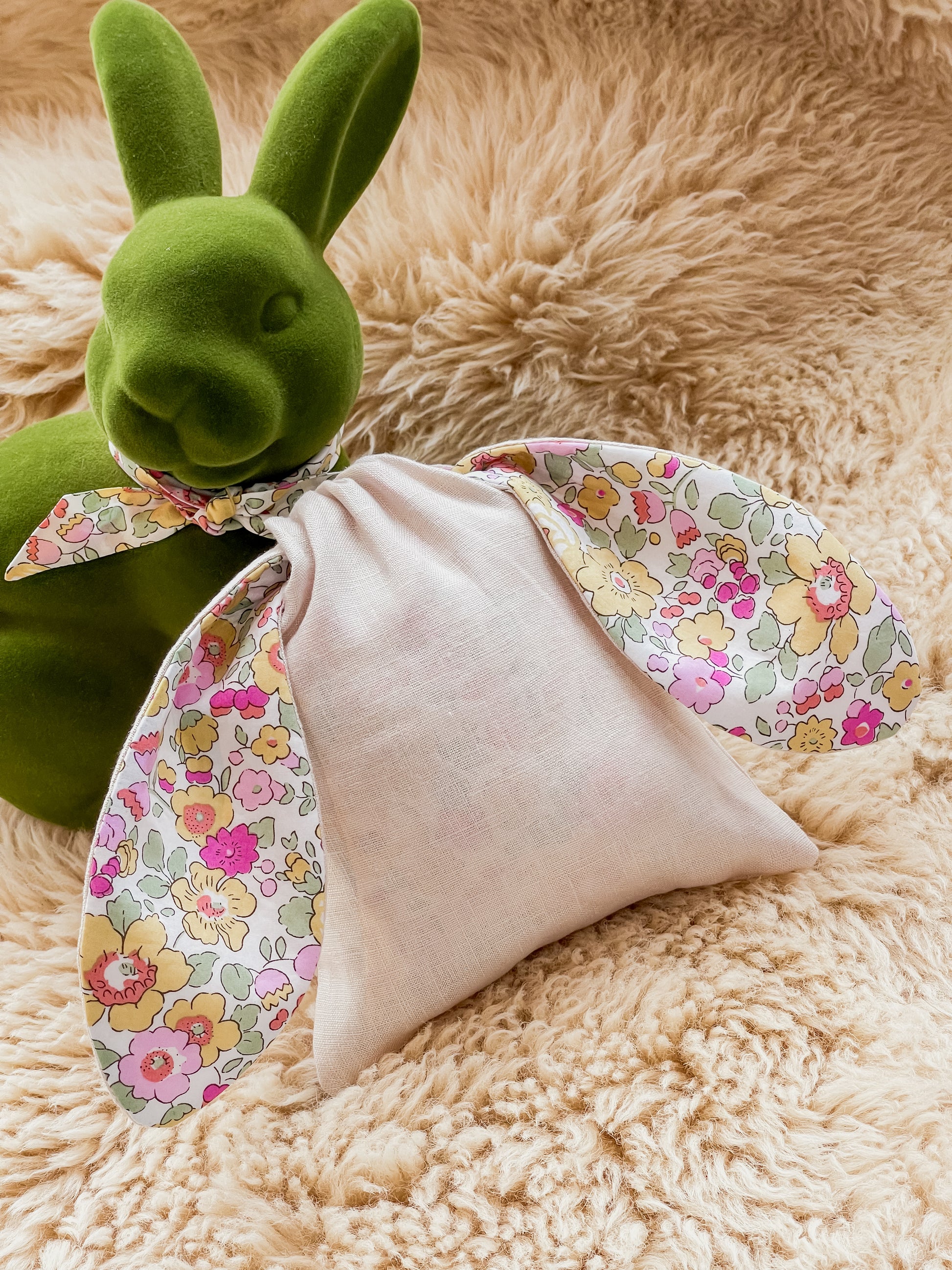 Made from soft, natural linen and fully lined with your choice of Liberty fabric, each bag features gently padded bunny ears for a sweet, playful touch. The simple knot design allows you to tie the ears together to securely hold Easter treats making it practical as it is beautiful with it's little floppy ears.